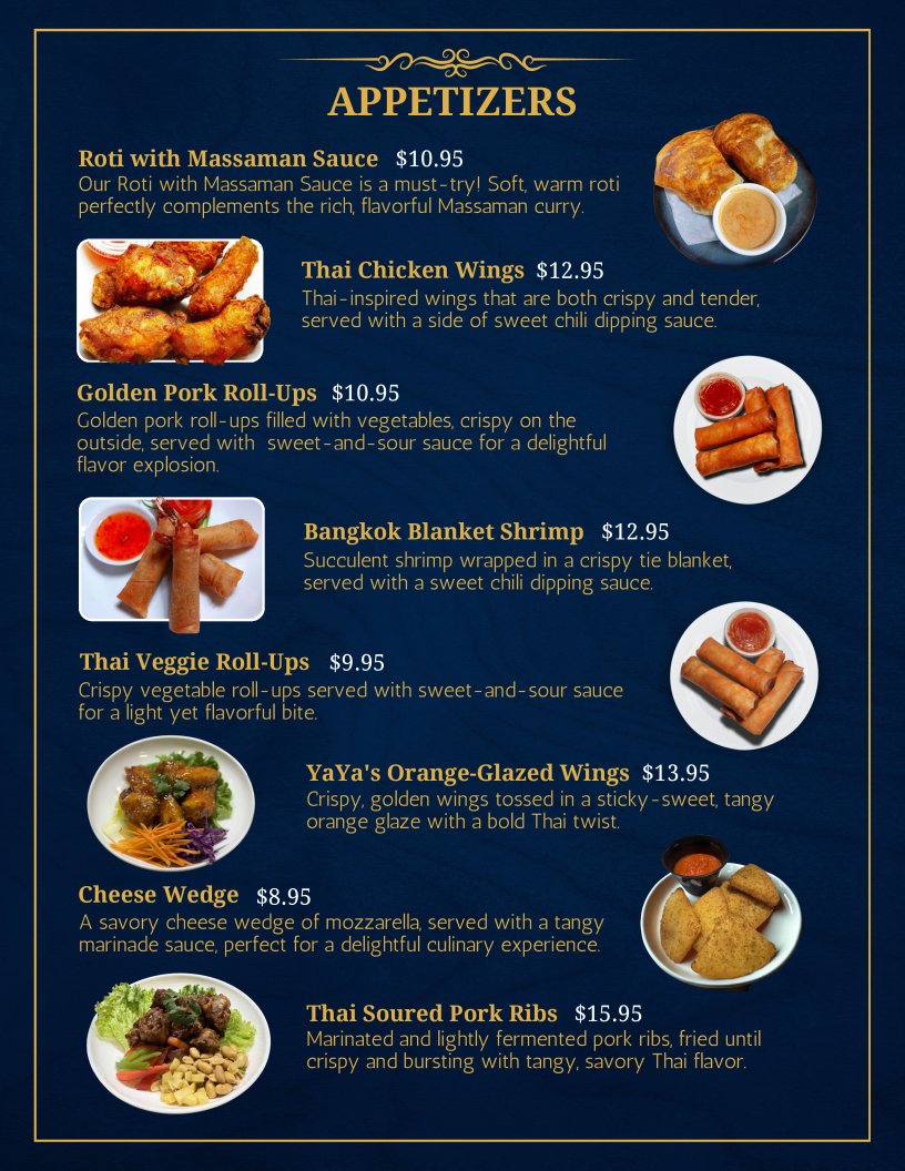 Introducing the Menu of YaYa's Thai Street Fusion